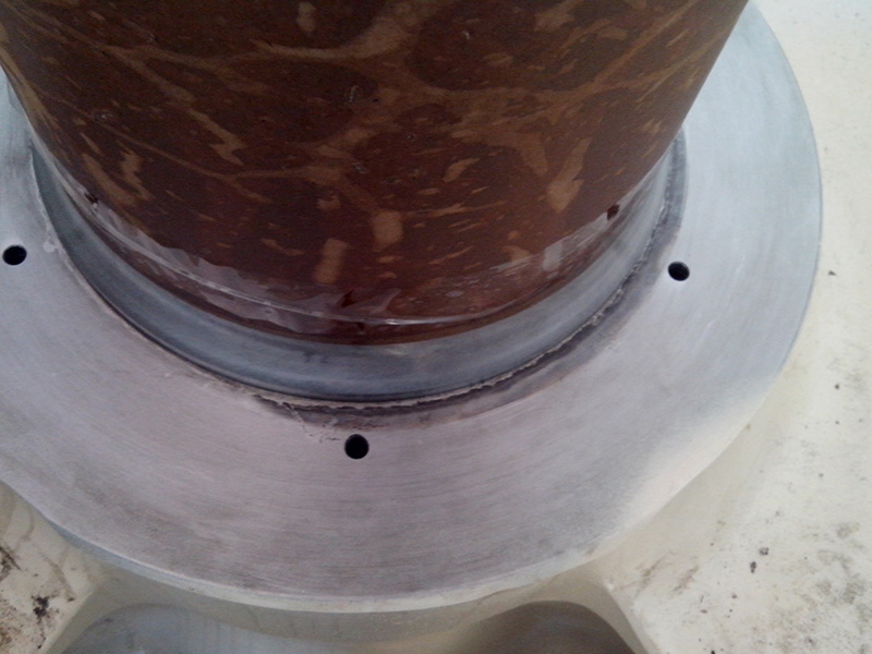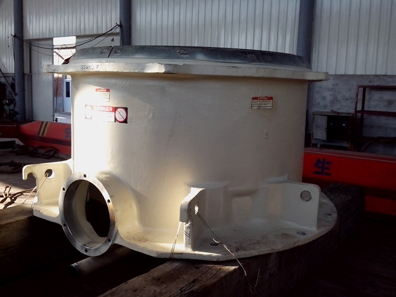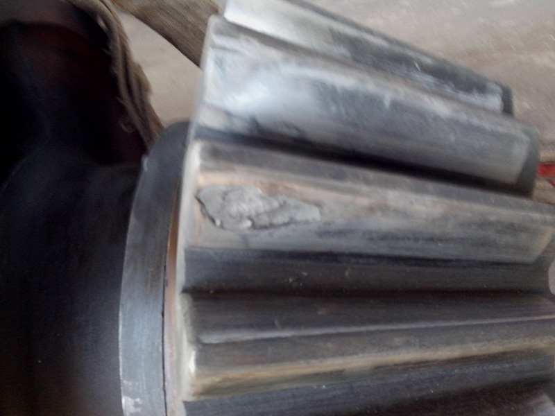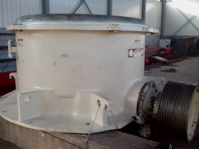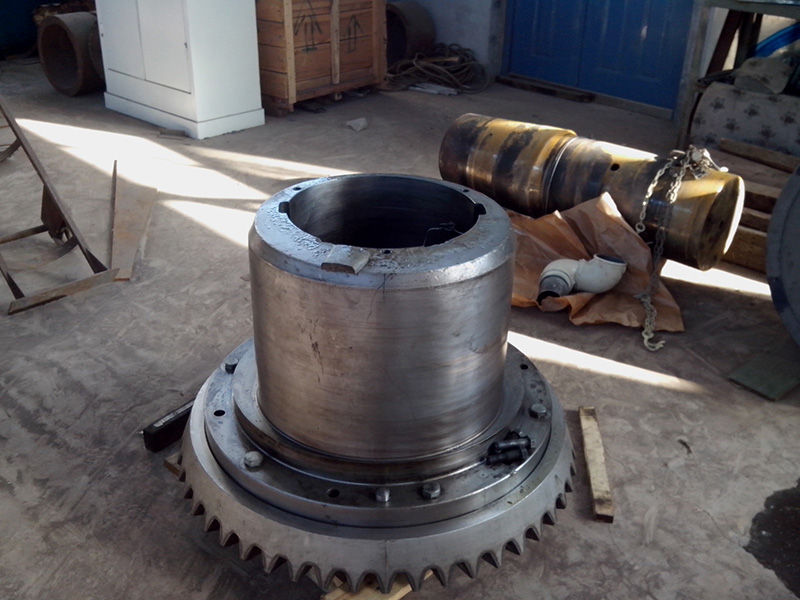 2014-06-08 客戶HP500 破碎機運行中發(fā)生主軸斷裂,運到我公司進行維修。我司技術(shù)人員拆除主軸后發(fā)現(xiàn)主軸錐孔超差,然后對主機架進行補焊、重新加工,最后安裝新主軸。