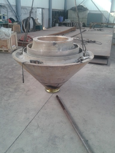2014-08-25客戶HP500圓錐破碎機(jī)動(dòng)錐體自行更換球頭時(shí),由于安裝不到位,導(dǎo)致無(wú)法運(yùn)行,運(yùn)到我公司維修。由我司技術(shù)人員拆除球頭,重新安裝成功。